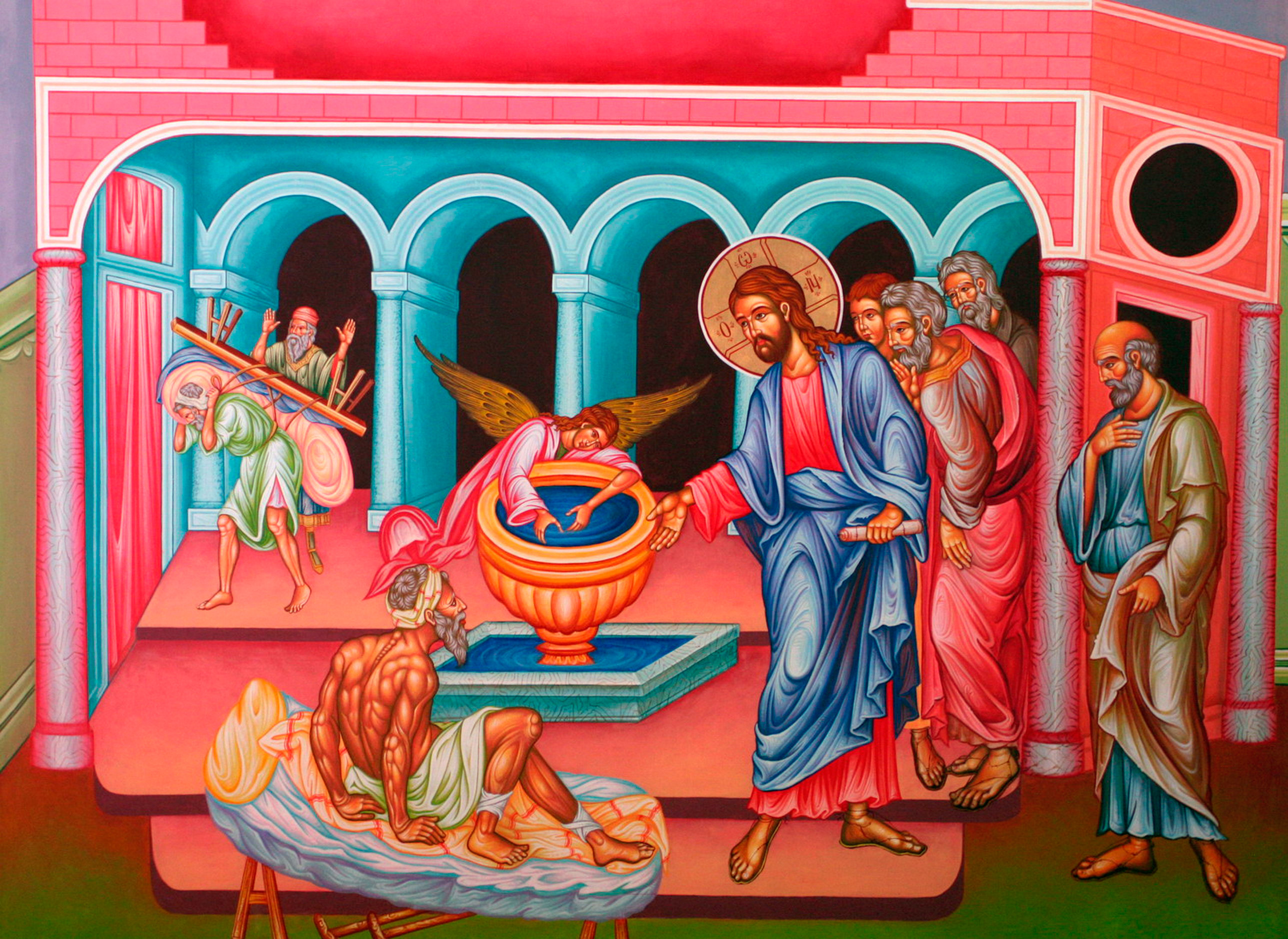 The holy Evangelist John the Theologian tells us that in Jerusalem, by the Sheep’s gate is a pool, before which there were five closed entrances where a multitude of the sick lay. At times an Angel of the Lord would descend into the pool and trouble the waters, and whoever would first step into those waters would be healed (Jn. 5:2–4). Passing through towns and villages, revealing to people the mysteries of the Kingdom of God, Christ came one day to the Sheep’s pool. He saw there those sick people who desired healing. Among them was a man who suffered from an infirmity for thirty-eight years. Christ came to him and asked, "Do you want to be made whole?" (cf. Jn. 5:6). The sick man answered, "Sir, I have no man, when the water is troubled, to put me into the pool: but while I am coming, another steps down before me." Christ said to him, "Take up your bed and walk," and the sick man was immediately healed (cf. Jn. 5:7–9). After some time Jesus Christ met him in the temple and said, "See, you have been made healthy. Sin no more, lest a worse thing should come upon you" (cf. Jn. 5:14).